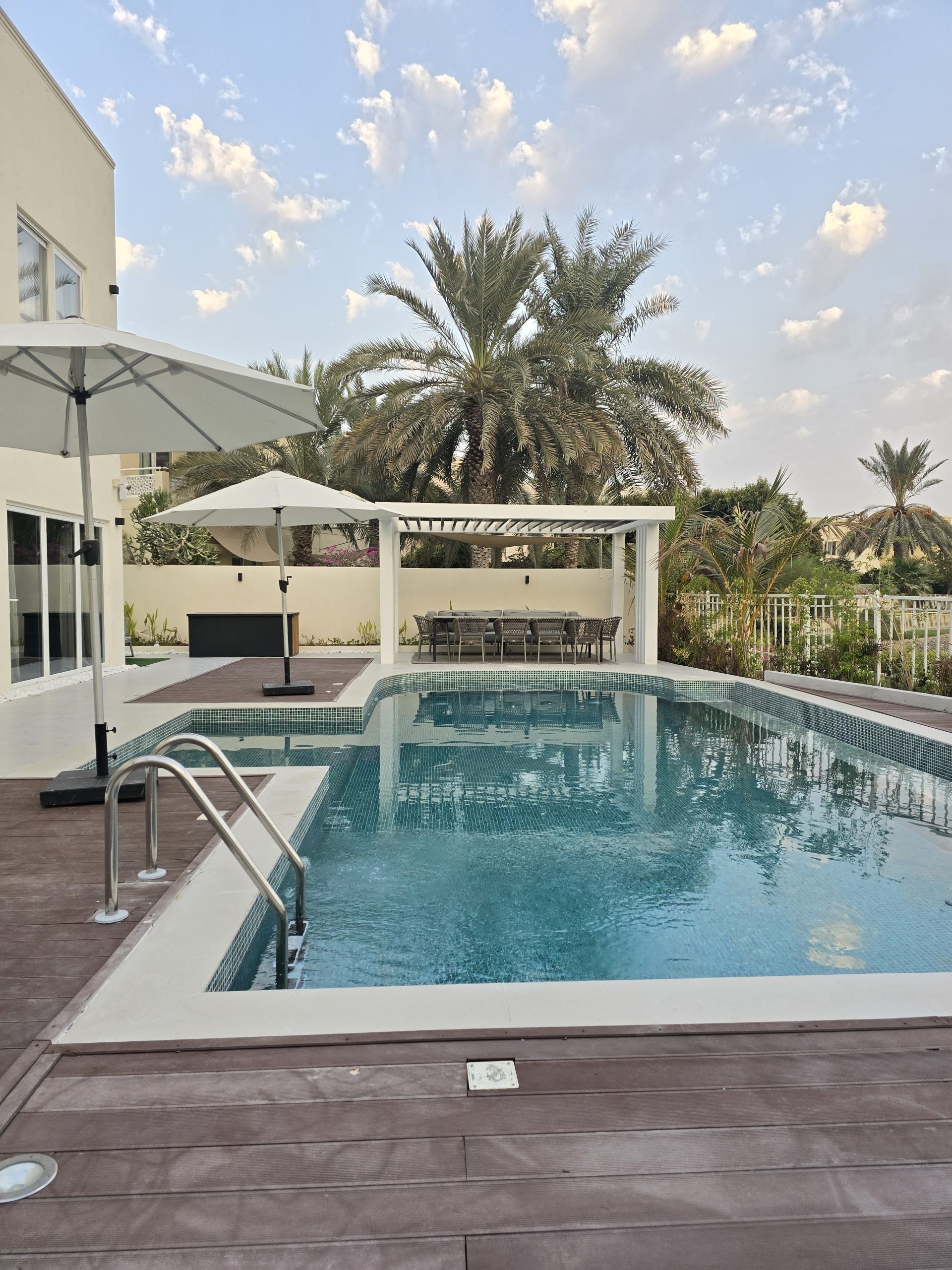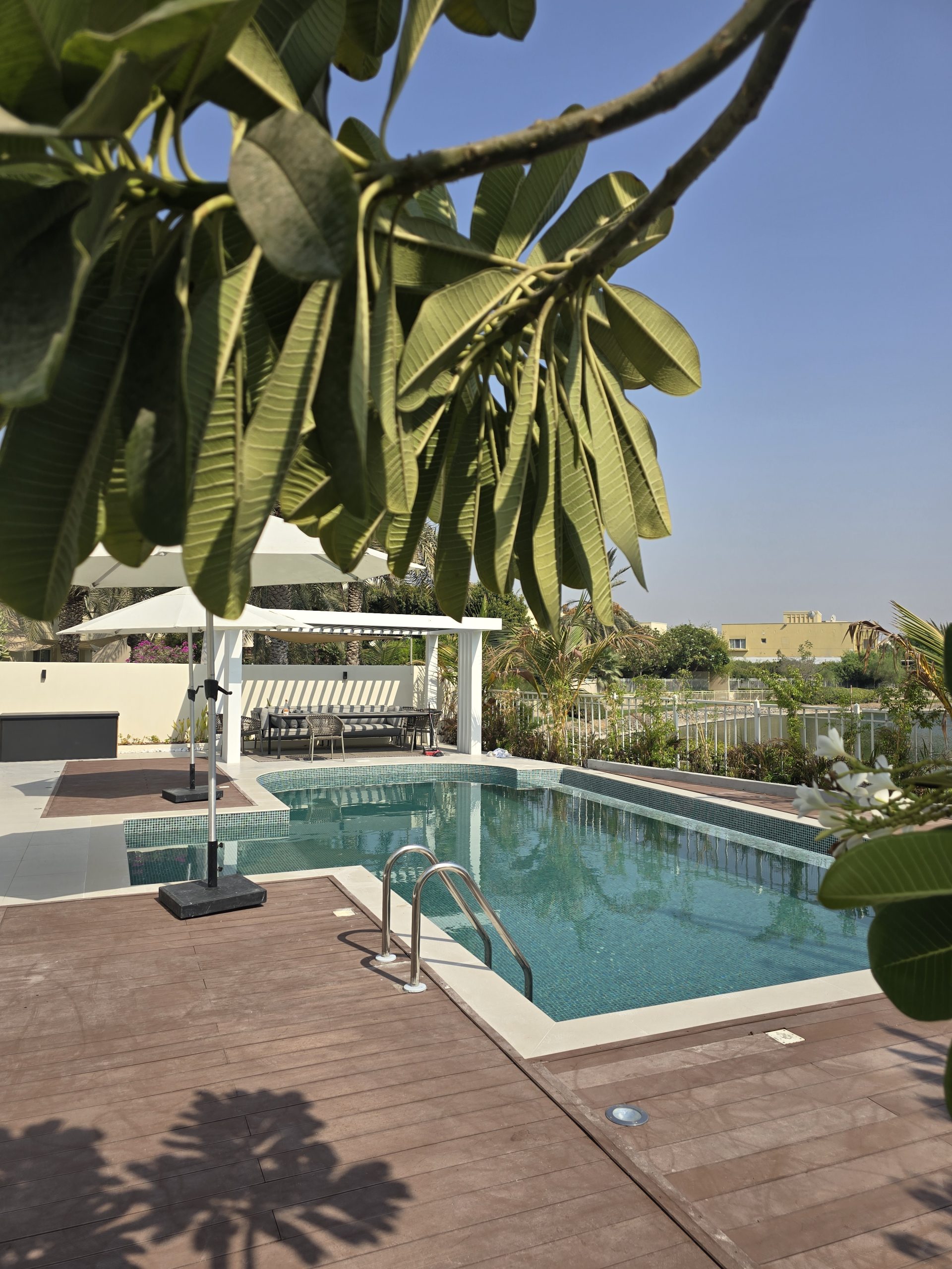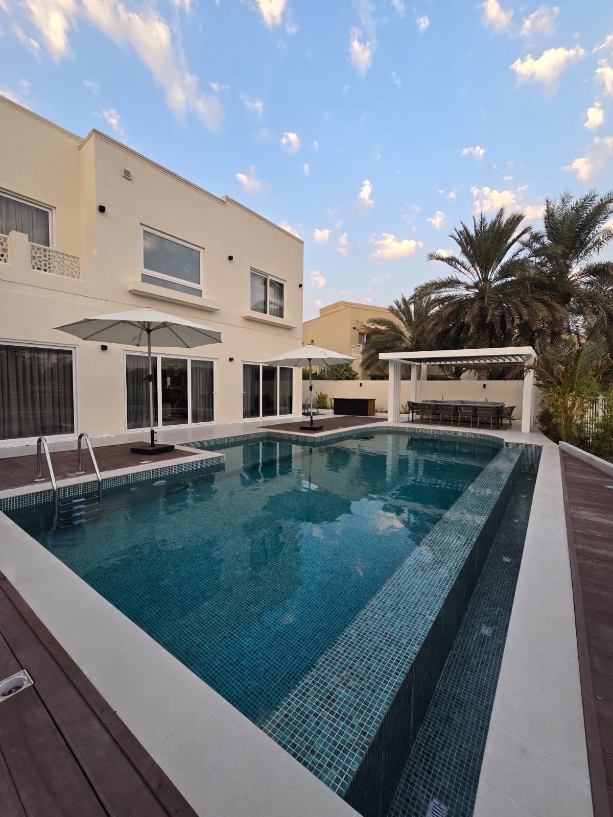 The completed villas feature resort-style, luxurious outdoor living spaces, reflecting M Square M Cube’s expertise in high-end craftsmanship and creating elegant, functional environments.